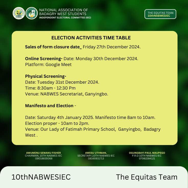 Notice of Nabwes Election Schedule for the 10th Adminitration